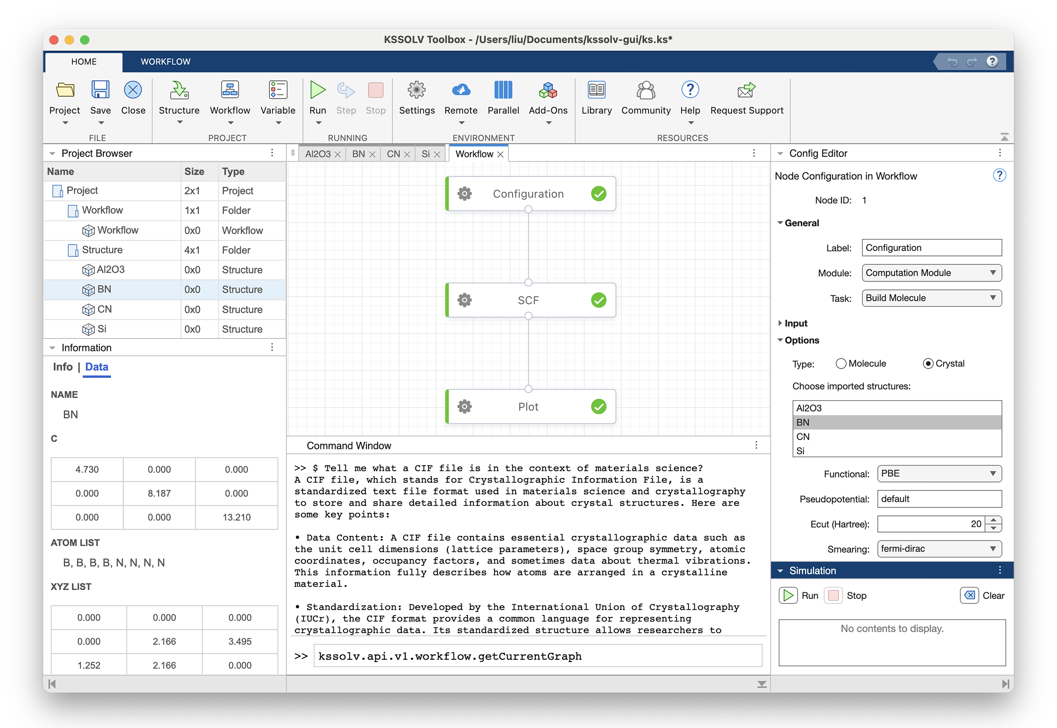 Design and execute complex computational workflows without writing scripts. From structure relaxation to band structure — all in a few clicks.